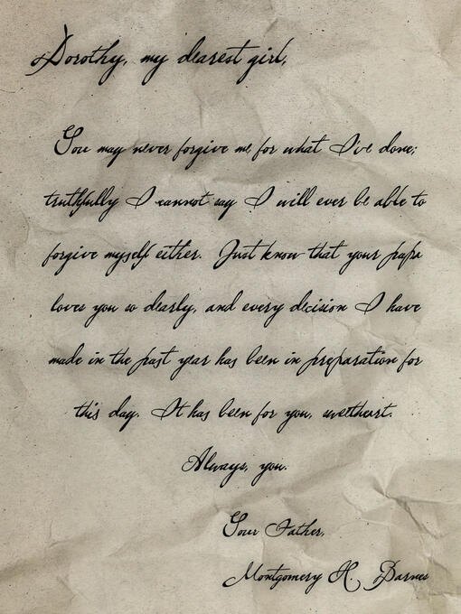 Transcript:Dorothy, my dearest girl,You may never forgive me for what I’ve done; truthfully I cannot say I will ever be able to forgive myself either. Just know that your papa loves you so dearly, and every decision I have made in the past year has been in preparation for this day. It has been for you, sweetheart.
