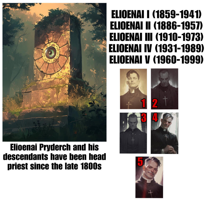 According to my research, since approximately 1880, Elioenai Pryderch and his "descendants" have been leading the New King's Faith Baptist Church consecutively.Despite supposedly being the son of each forebearer... there are absolutely NO records of marriage for any such individuals under that name within the last CENTURY.This would go against the protestant faith of a pastor having sexual relations outside of marriage.What is the truth ?Maybe it's one guy... he could potentially be a vampire (they are real!) or some other type of immortal.Just speculation........